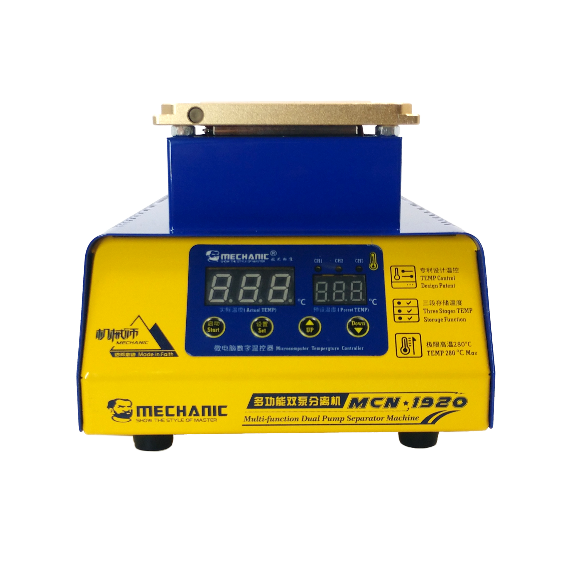 La MCN-1920 es una máquina separadora de pantalla avanzada diseñada para técnicos y talleres de reparación de dispositivos móviles. Su sistema de doble bomba permite separar pantallas de manera rápida, segura y eficiente, minimizando el riesgo de dañar el vidrio o el panel táctil.