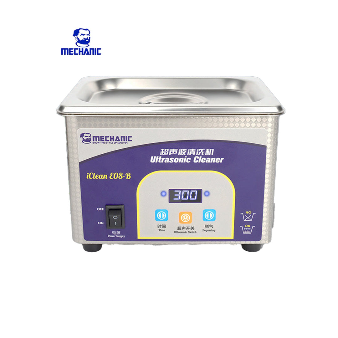 La MECHANIC ICLEAN E08 es una tina ultrasónica profesional diseñada para la limpieza profunda y segura de componentes electrónicos y piezas delicadas. Su avanzada tecnología de ultrasonido garantiza una eliminación eficaz de polvo, grasa, óxidos y residuos microscópicos sin dañar los componentes.