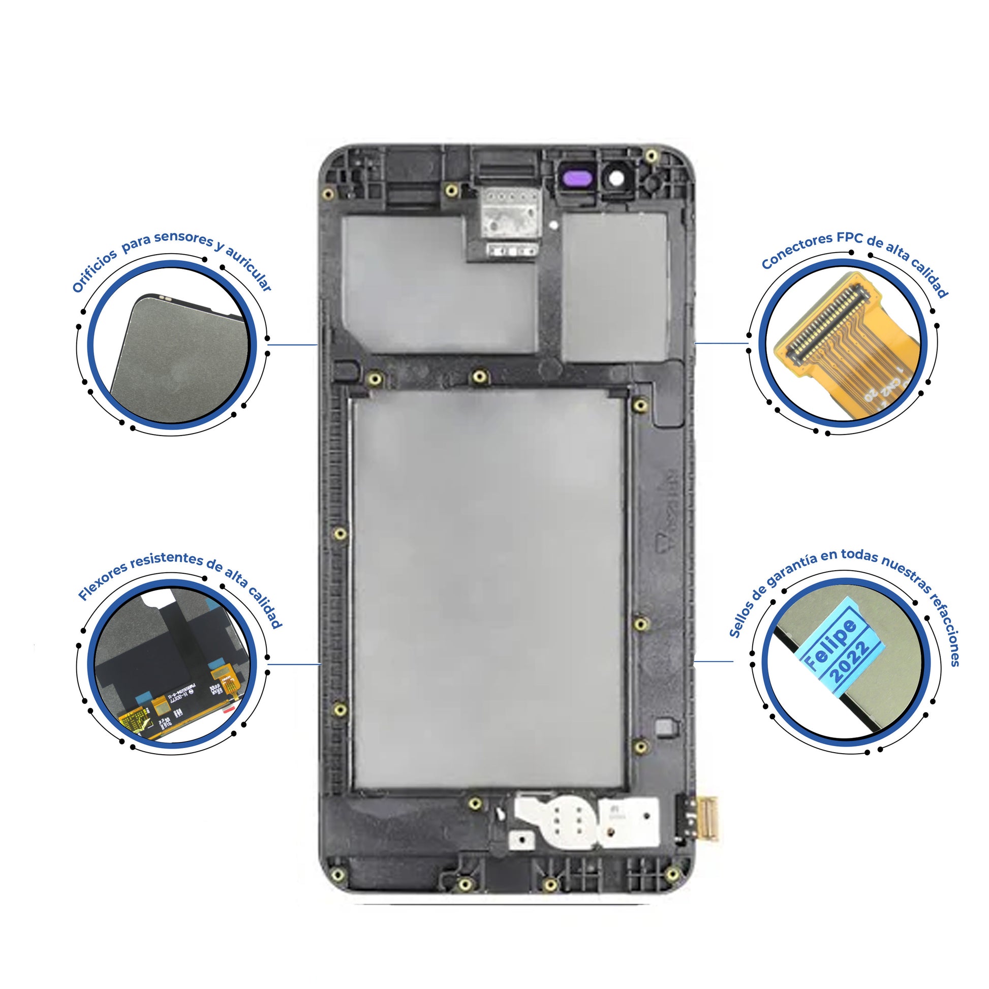 - Módulo completo: incluye pantalla, digitalizador táctil y marco